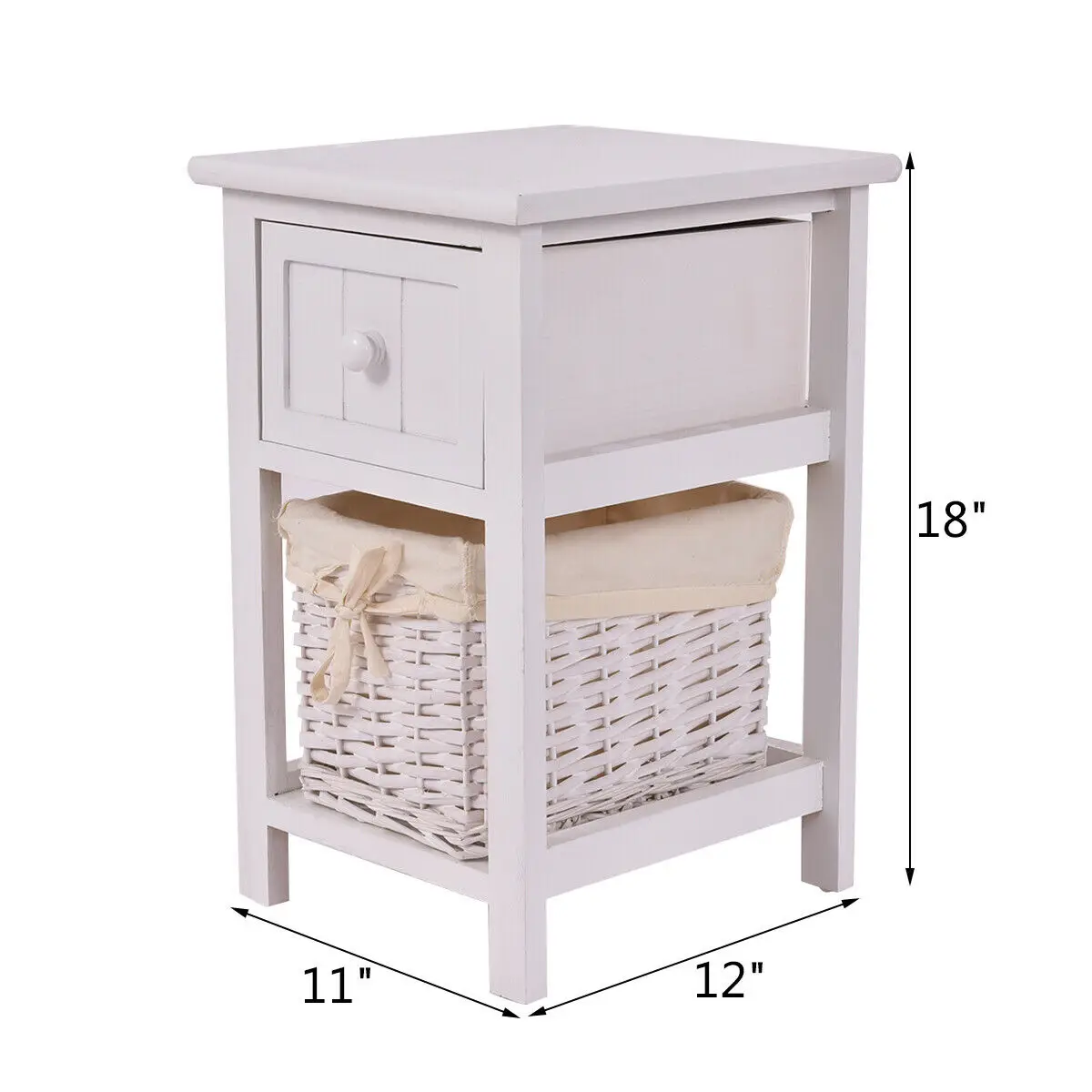 Hot Sale Costway Mini Night Stand 2 Layer 1 Drawer Bedside End Table Organizer Wood W/Basket