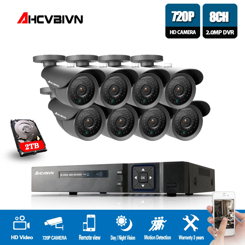 AHCVBIV 8CH DVR 720P HDMI CCTV System Video Recorder 8PCS 1200TVL Home Security Waterproof Night Vi
